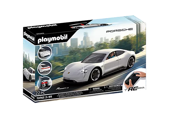 Die Elektro-Fahrzeugstudie von Porsche mit RC-Steuerung, coolen Lichteffekten und Ladesäule.