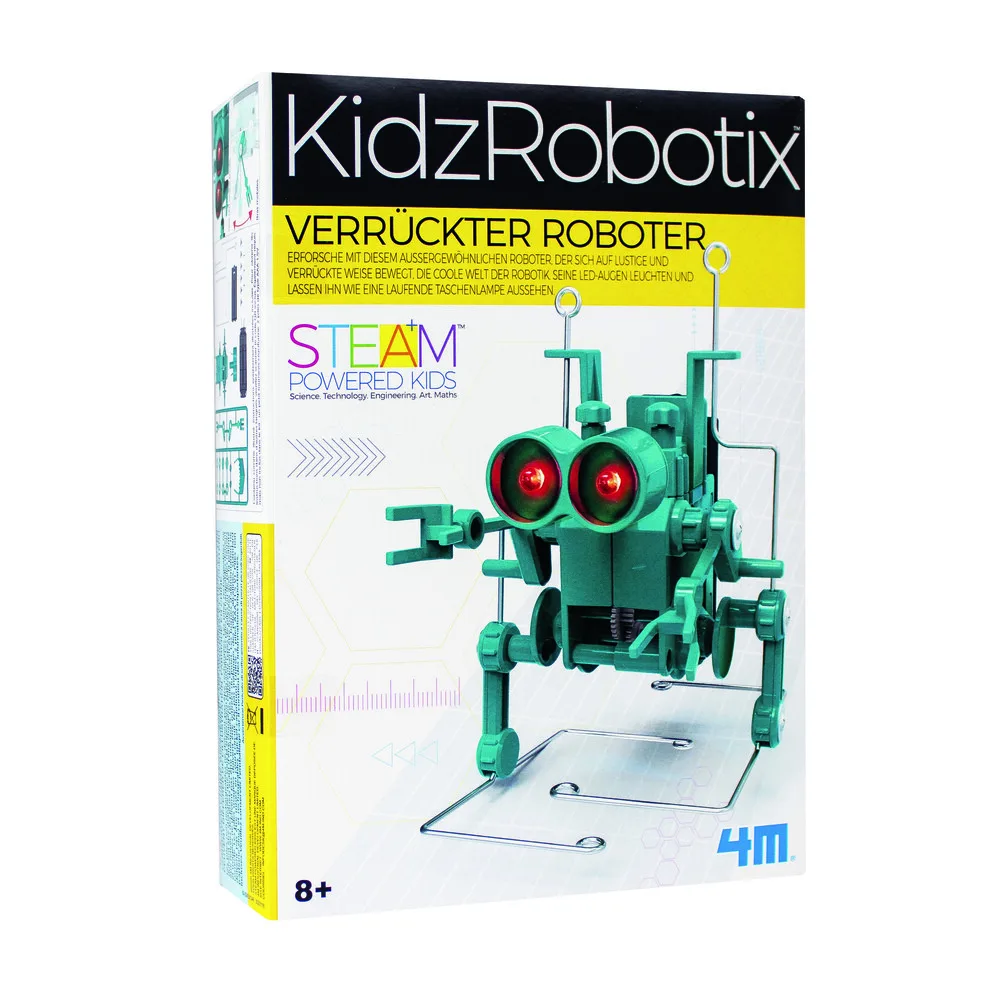 Erlebe mit diesem aussergewöhnlichen Roboter, der sich auf lustige und bizarre Weise bewegt, die coole Welt der Wissenschaft. Seine LED-Augen leuchten auf und lassen ihn wie eine wandelnde Taschenlampe aussehen. Fliesst elektrischer Strom in das Getriebe und die Roboteraugen des Roboters, erweckt es den Wacky Robot zum Leben!